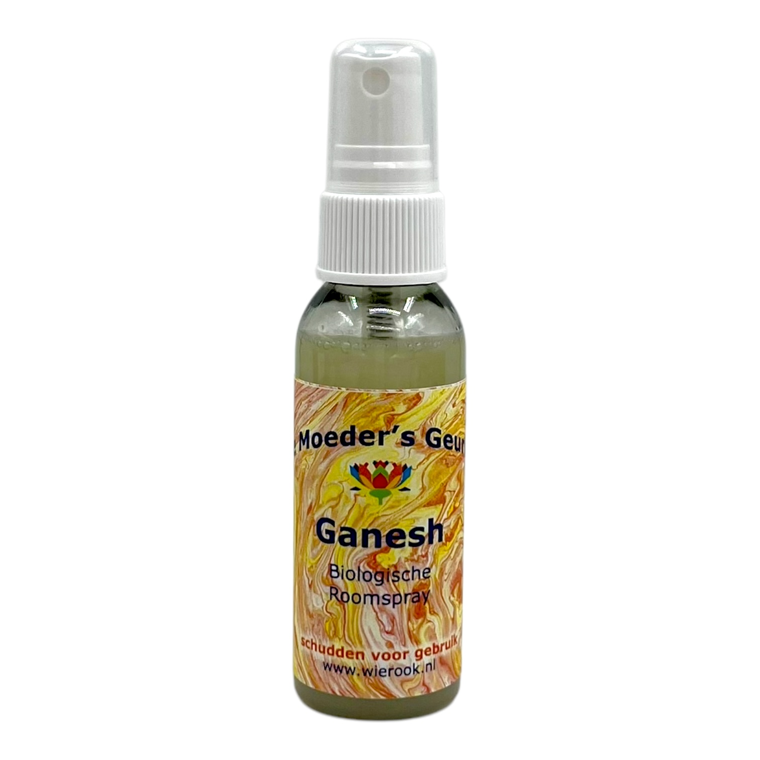 Ganesh Nagchampa Roomspray – Roomspray van puur biologisch lavendelwater uit de Provence in Zuid-Frankrijk. Hieraan is de Moeder’s Geuren Ganesh Nagchampa geurolie toegevoegd.