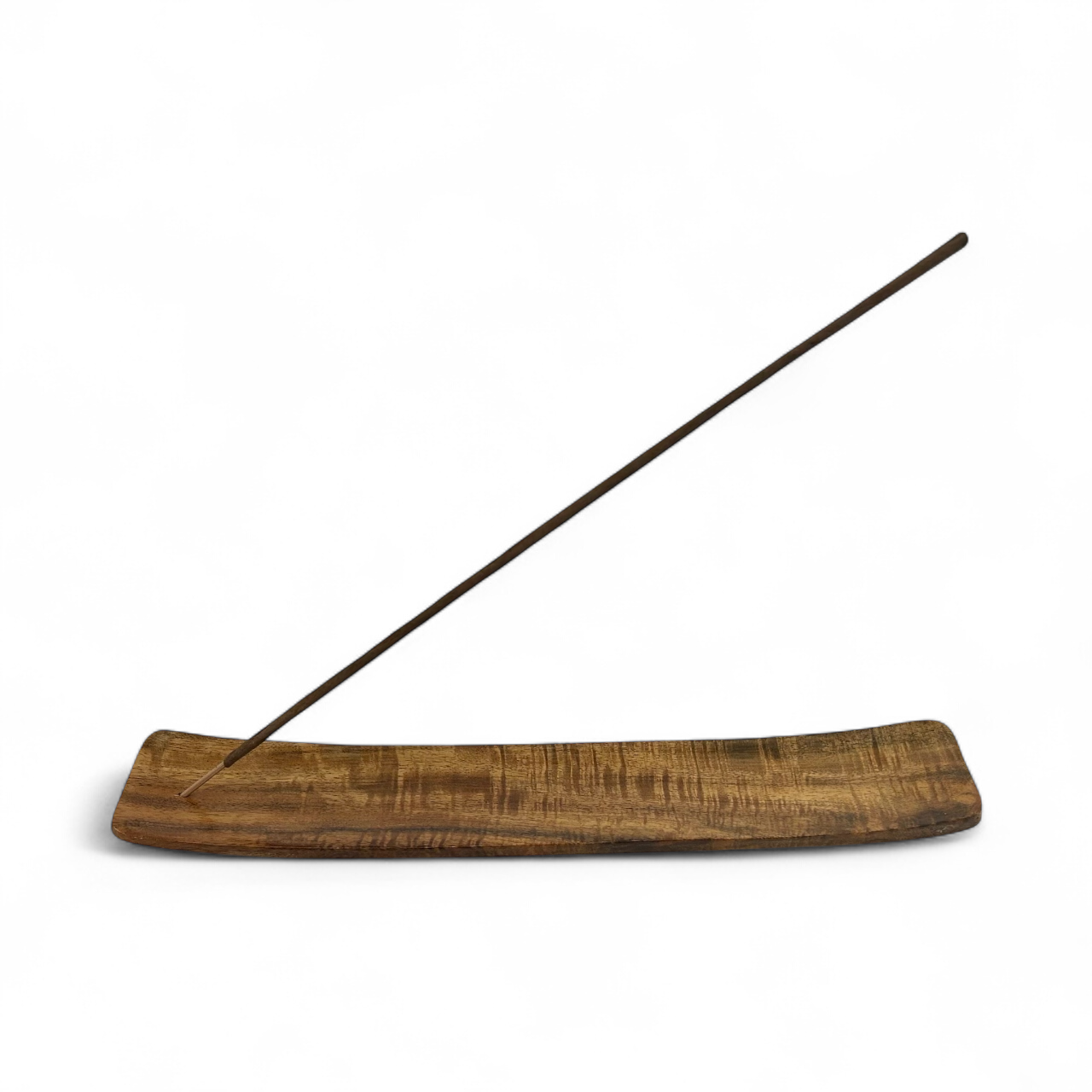 Houten wierookhouder platte gondel potloodhout. Voor het branden van lange wierookstokjes. De afmeting is 25 cm lang en 4 cm breed.