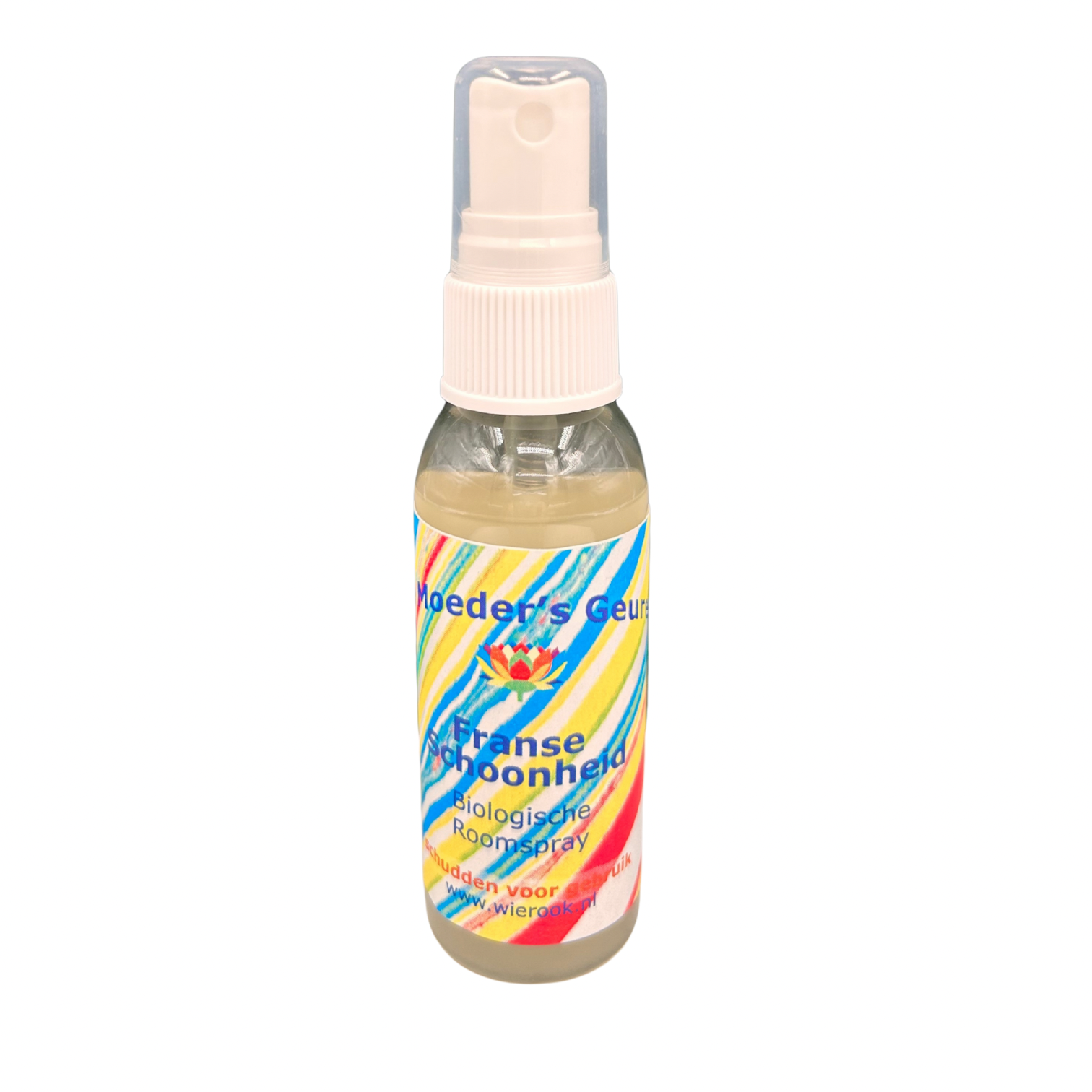 Franse Schoonheid Roomspray – Roomspray van puur biologisch lavendelwater uit de Provence in Zuid-Frankrijk. Hieraan is de Moeder’s Geuren Franse Schoonheid geurolie toegevoegd.