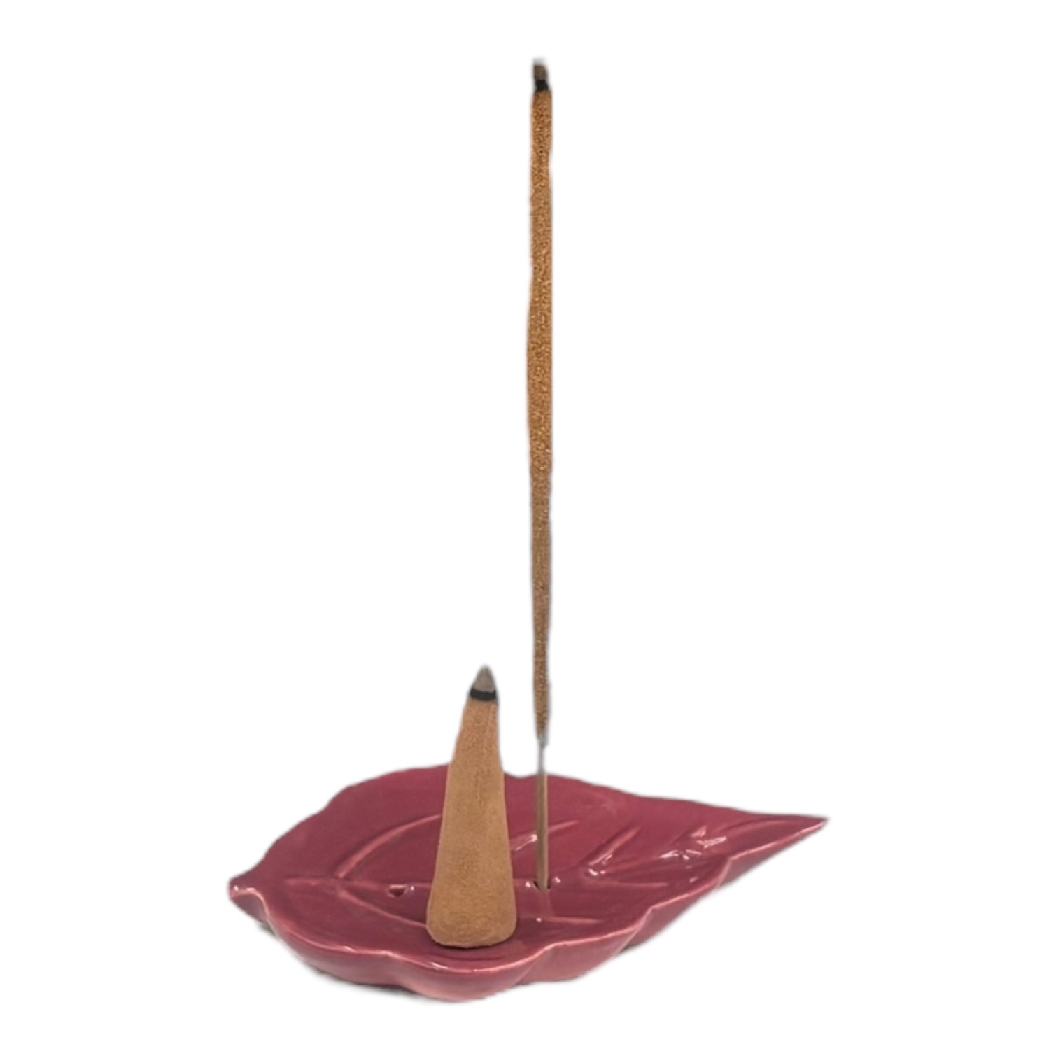 Keramiek wierookhouder blaadje, groot (bordeauxrood): voor wierookstokjes of kegeltjes