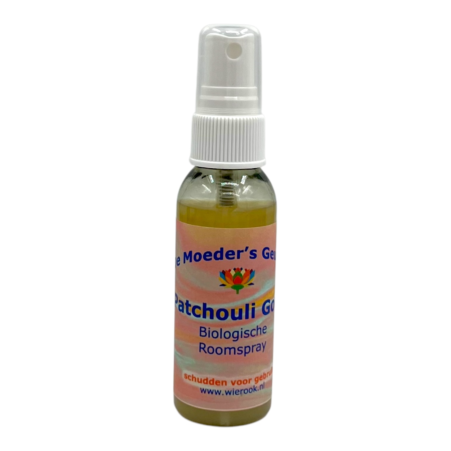 Patchouli Goud Roomspray – Roomspray van puur biologisch lavendelwater uit de Provence in Zuid-Frankrijk. Hieraan is de Moeder’s Geuren Patchouli Goud geurolie toegevoegd.