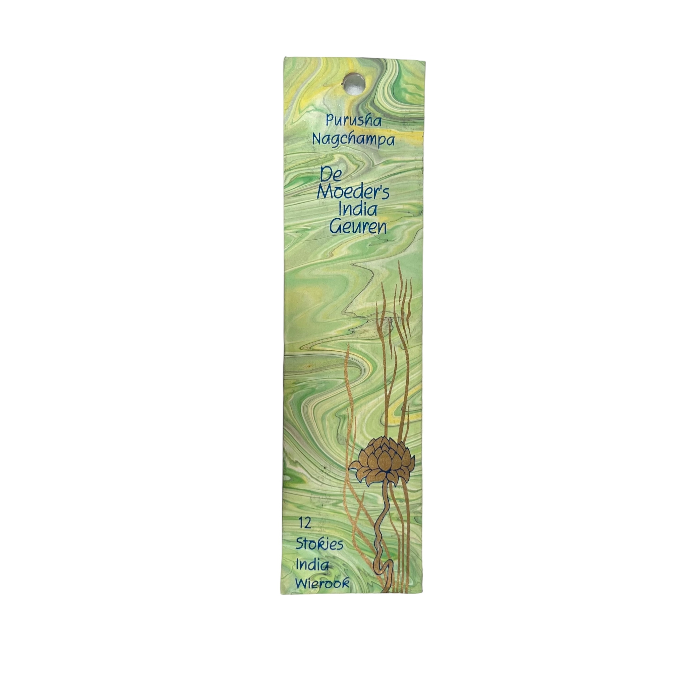 Purusha Nagchampa is een geur die de ontspannende therapeutische werking van Engelse lavendel in zich draagt. Ondersteund door een basis van Citrus noten, groene Patchouli noten en zachtheid van Orris wortel en melkachtige Benzoin. In de basis bevindt zich ook een Salie noot die tezamen met de Lavendel het een verfrissend aroma geeft.