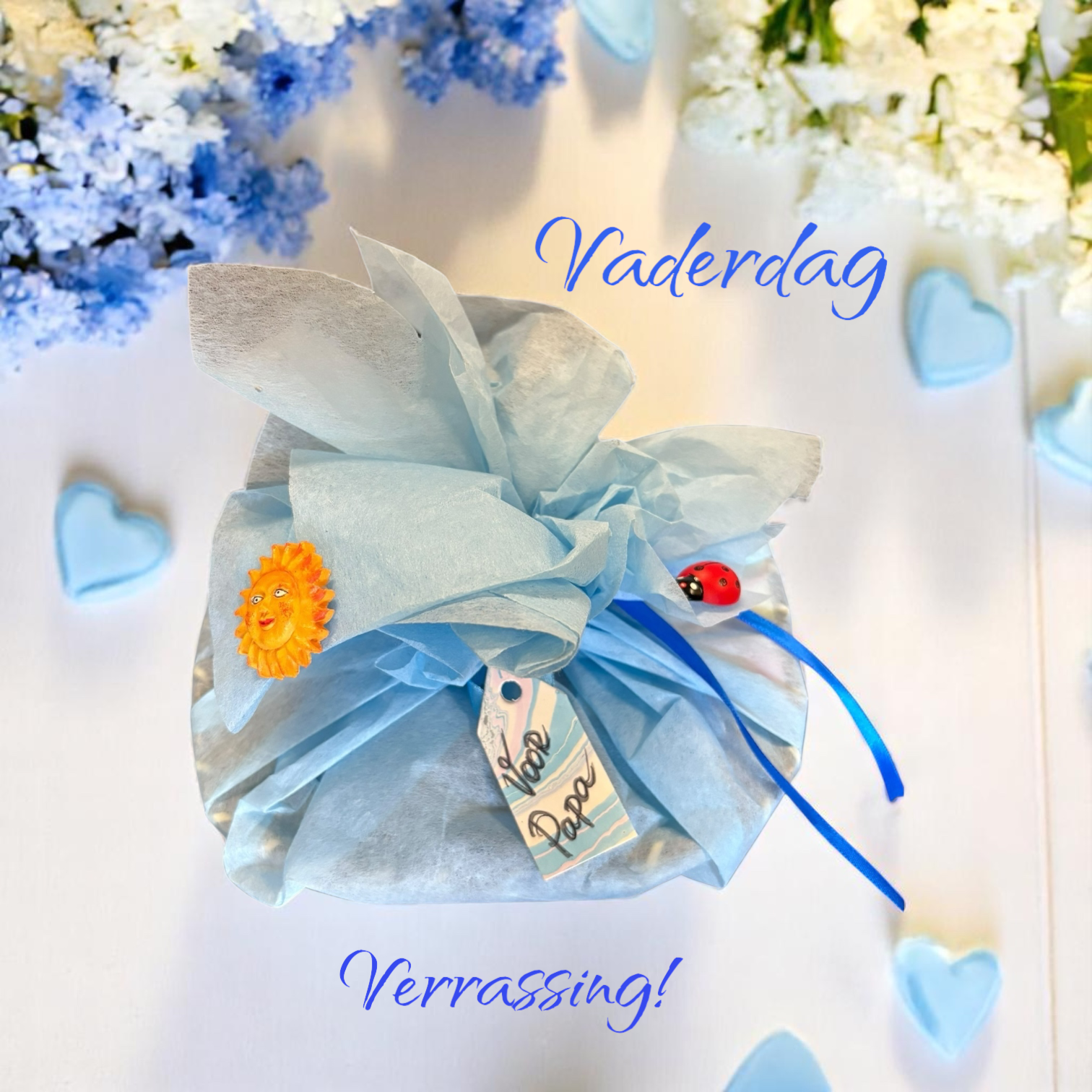 Wat leuk … een echte verrassing. Je hebt een cadeautje uitgezocht voor papa en niemand weet wat er in zit, zelfs jij niet 🥰 De inhoud heeft natuurlijk alles te maken met de heerlijke zachte geuren van De Moeder’s Geuren, maar verder verklappen we niets … alleen dat het een rijkelijk gevuld pakketje is, met nieuwe en soms onbekende geurverrassingen 🎁