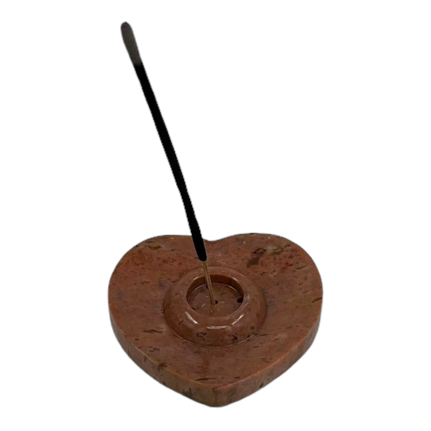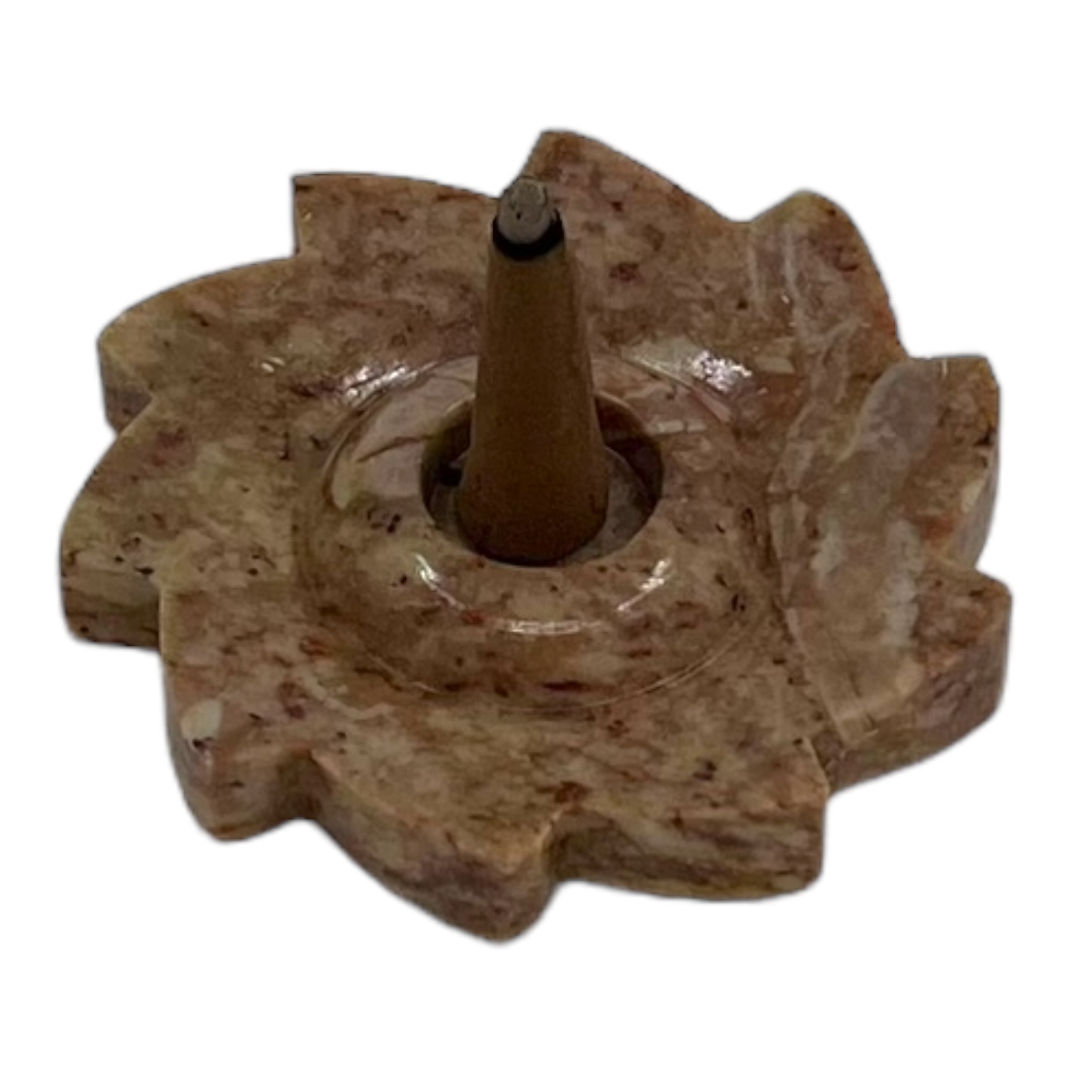 NB. Vanwege de natuurlijke kleuring van de speksteen is elke wierookhouder uniek, en zal dus wat verschillen zitten in de kleurtinten, tekening en afwerking.