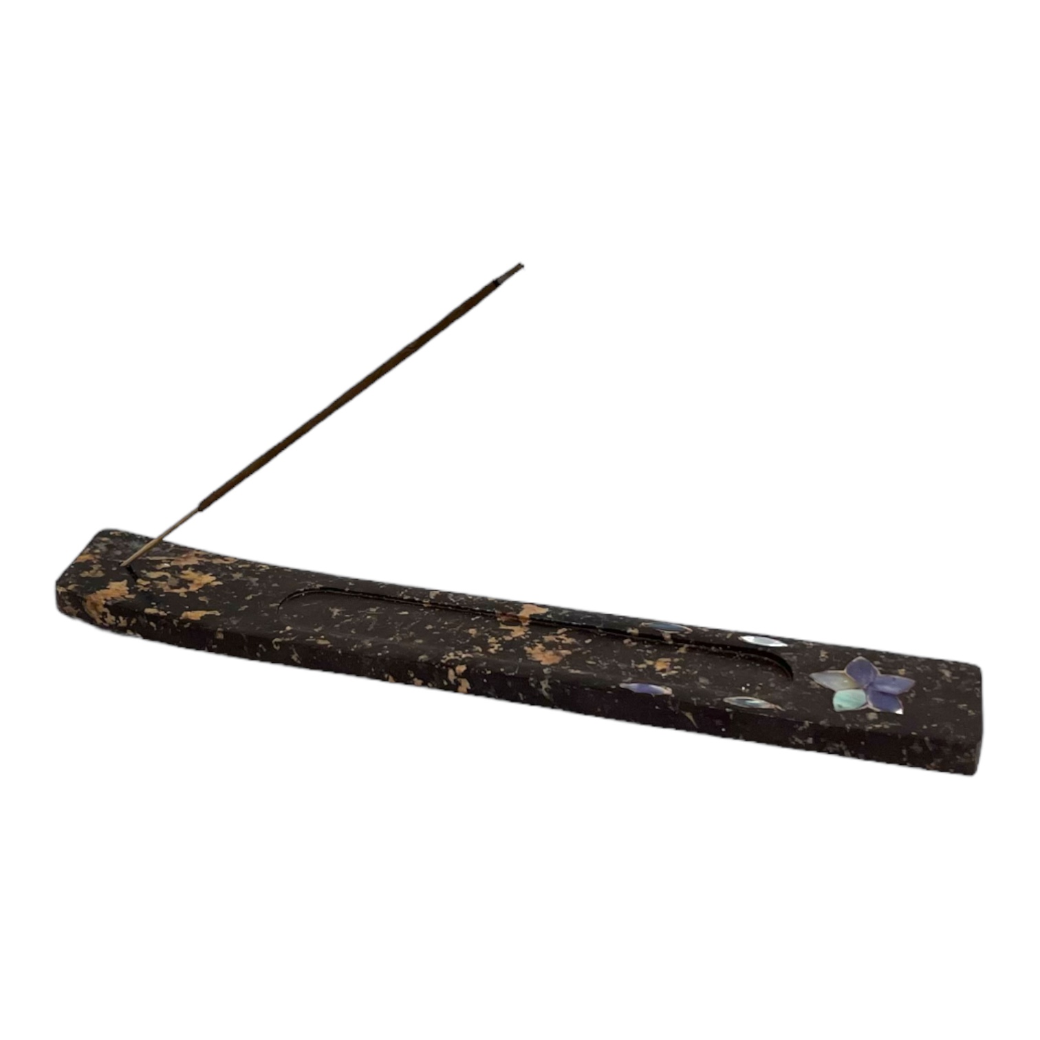 Wierookhouder gondel – speksteen – inlay blauwe bloem
