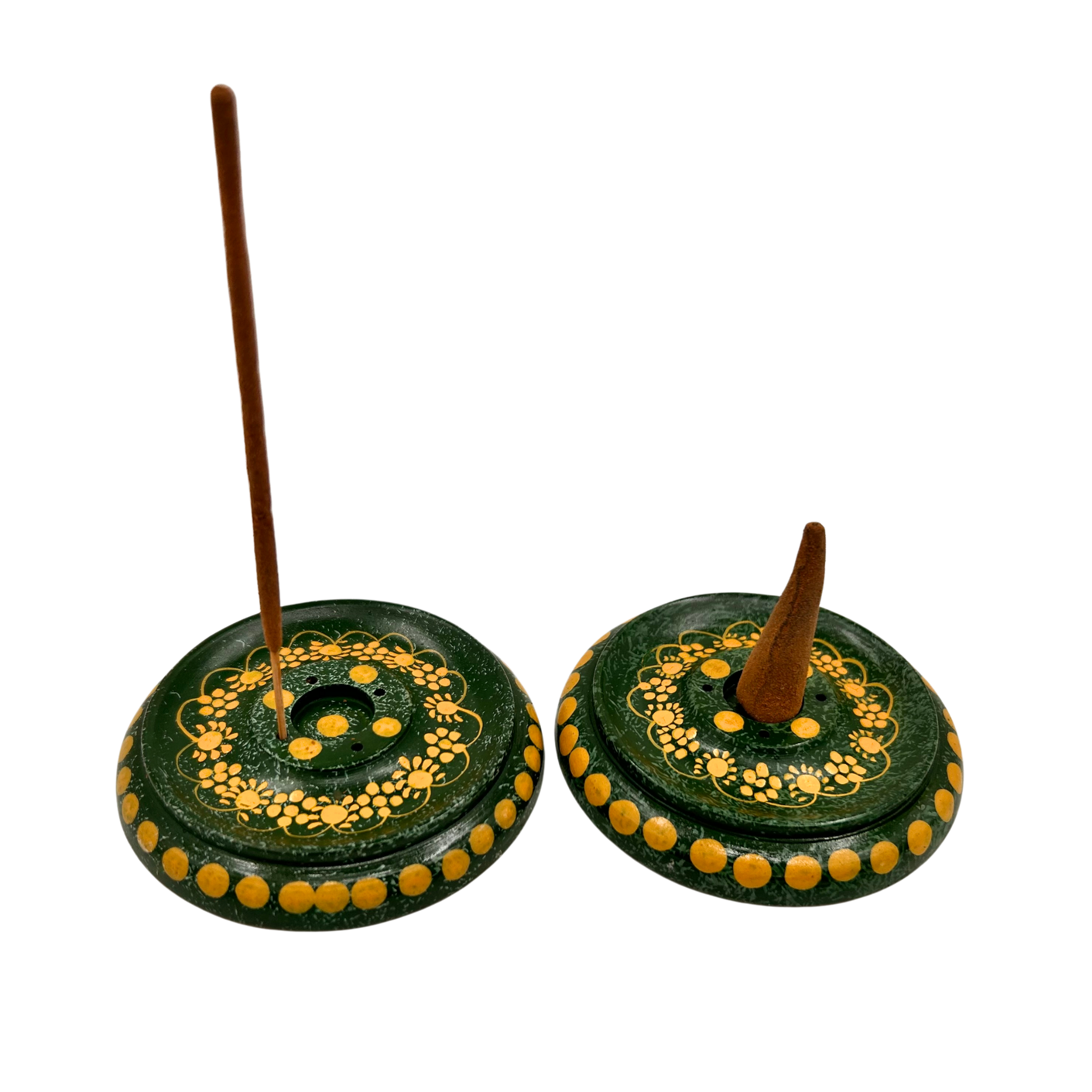 Handgemaakte, glad gepolijste, spekstenen wierookhouder voor het branden van stokjes en kegeltjes. De doorsnee van de wierookhouder is 7,5cm.