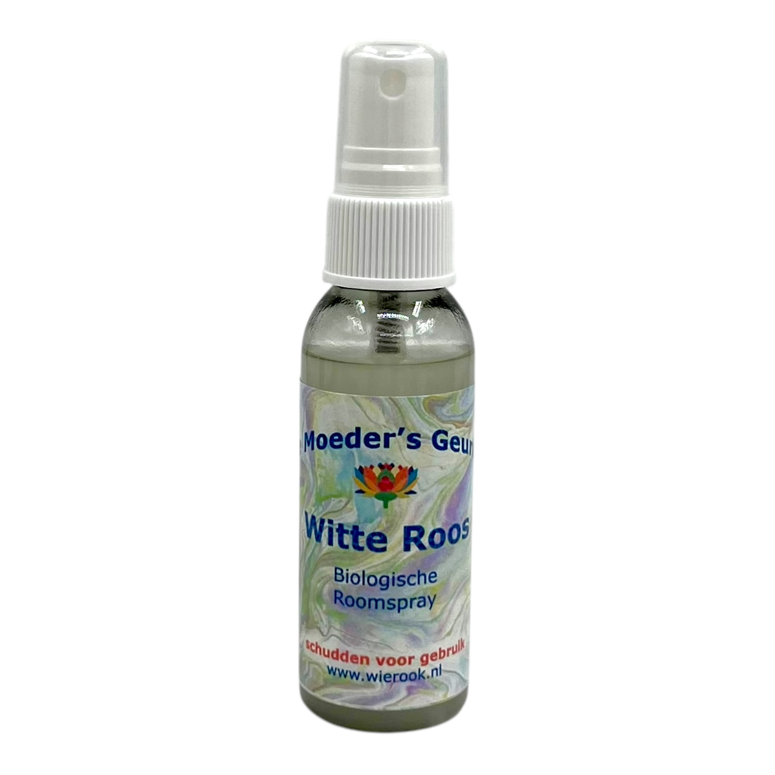 Witte Roos Roomspray – Roomspray van puur biologisch lavendelwater uit de Provence in Zuid-Frankrijk. Hieraan is de Moeder’s Geuren Witte Roos geurolie toegevoegd.
